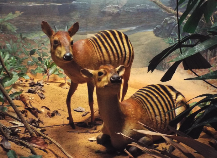 The Zebra Duiker: Instantly recognizable by its unique dark and light vertical stripes, this species is native to the fast-disappearing Upper Guinean forests of West Africa.